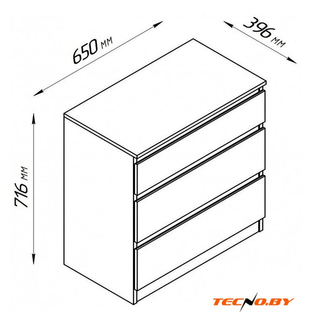 для гостиной, для жилой комнаты, для прихожей, для спальни, каркас ЛДСП, фасад ЛДСП, 3 ящика, 90.1x39x72.6 см