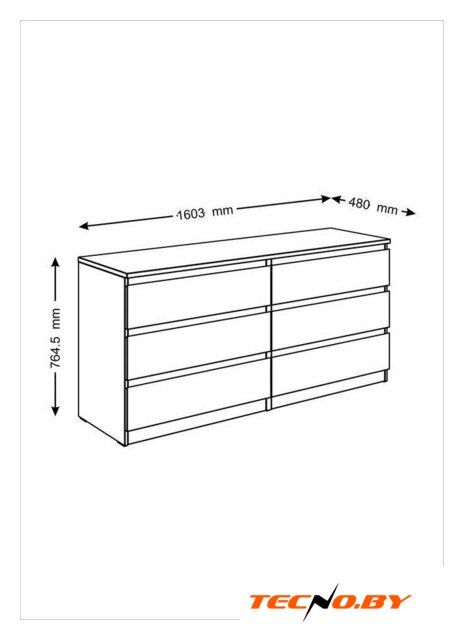 для спальни, для жилой комнаты, каркас ЛДСП, фасад ЛДСП, 6 ящиков, 160x39x71 см
