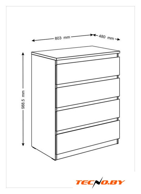 для гостиной, для жилой комнаты, для спальни, для прихожей, каркас ЛДСП, фасад ЛДСП, 4 ящика, 60x45.1x102 см