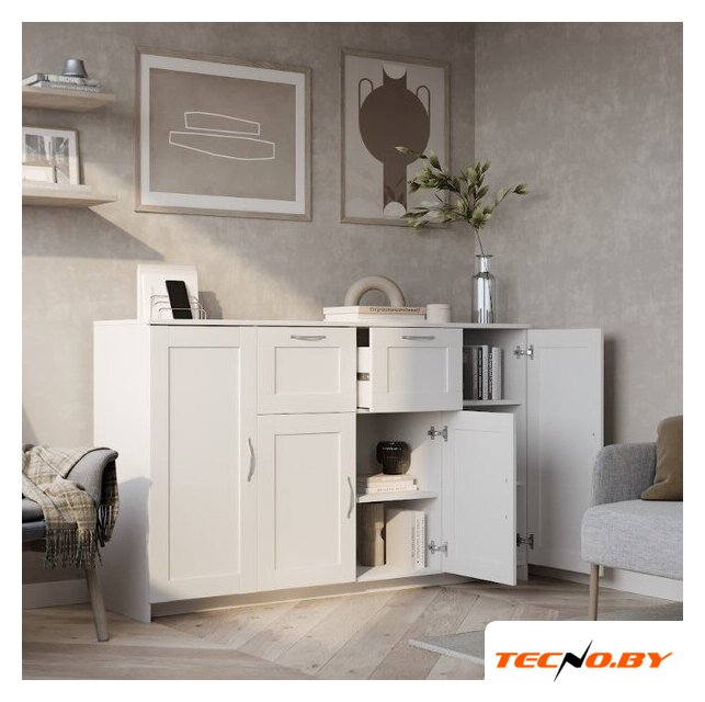 для гостиной, для спальни, для жилой комнаты, каркас ЛДСП, фасад ЛДСП, 4 ящика, 4 полки, 2 дверцы, 120.2x39.2x91.5 см