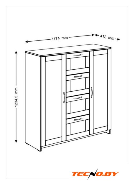 для гостиной, для спальни, для жилой комнаты, каркас ЛДСП, фасад ЛДСП, 4 ящика, 4 полки, 2 дверцы, 120.2x39.2x91.5 см