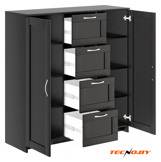 для гостиной, для детской, для жилой комнаты, для спальни, каркас ЛДСП, фасад стекло+ЛДСП, 8 полок, 117.1x41.2x123.4 см