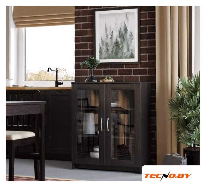 для гостиной, для детской, для жилой комнаты, для прихожей, для спальни, каркас ДСП, фасад стекло+ДСП, 3 полки, 2 дверцы, 78.2x41.2x94.6 см