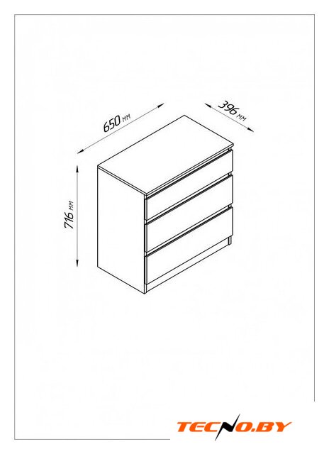 для гостиной, для жилой комнаты, для спальни, каркас ДСП, фасад ДСП, 3 ящика, 65x39.6x71.6 см