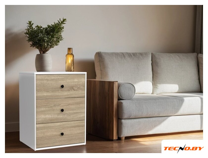 для жилой комнаты, для спальни, каркас ДСП, фасад ДСП, 3 ящика, 48.8x39x63 см