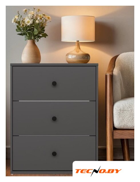 для жилой комнаты, для спальни, каркас ДСП, фасад ДСП, 3 ящика, 48.8x39x63 см