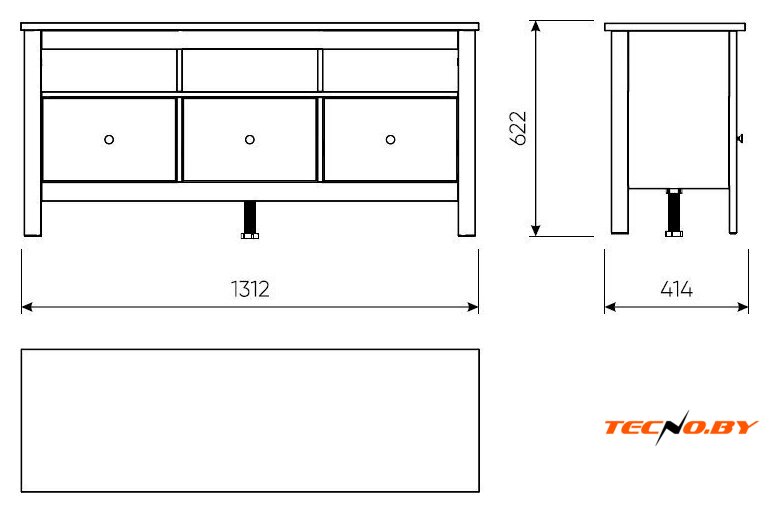 для гостиной, для жилой комнаты, для спальни, для телевизора, каркас ЛДСП, фасад ЛДСП, 3 ящика, 2 полки, 2 дверцы, 111.5x39x63.6 см