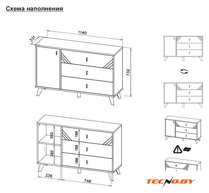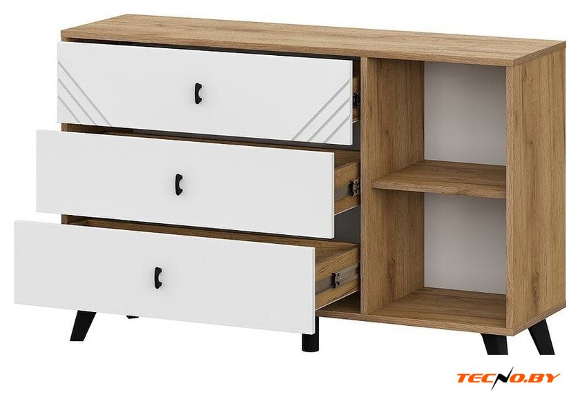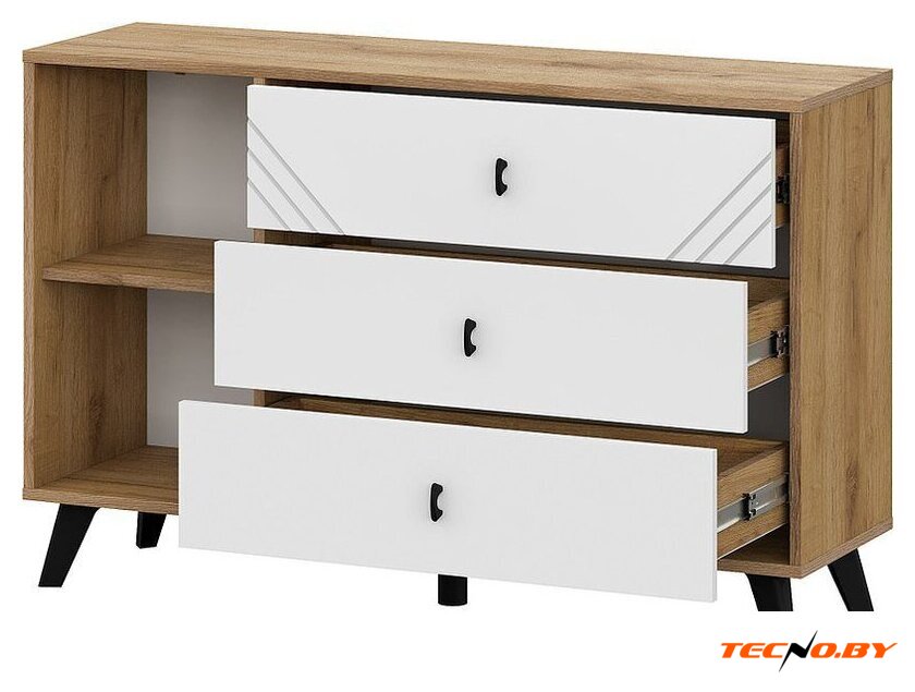 для гостиной, для жилой комнаты, для спальни, каркас ЛДСП, фасад ЛДСП, 3 ящика, 4 полки, 2 дверцы, 120.1x39x75.4 см
