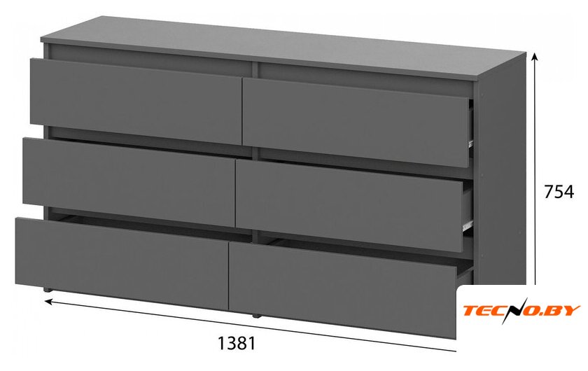 для гостиной, для спальни, каркас ЛДСП, фасад ЛДСП, 6 ящиков, 40x40.8x134 см
