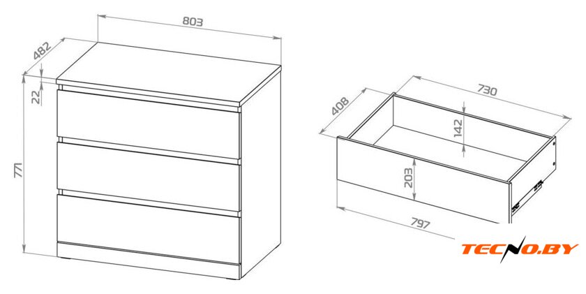 для гостиной, для жилой комнаты, для спальни, каркас ДСП, фасад ДСП, 5 ящиков, 80.3x48x98.85 см