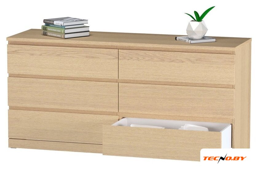 для гостиной, для жилой комнаты, для спальни, каркас ЛДСП, фасад МДФ, 6 ящиков, 155.8x42.2x95 см