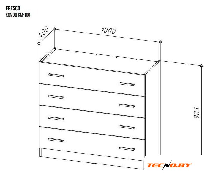 для гостиной, для жилой комнаты, для спальни, каркас ДСП, фасад ДСП, 4 ящика, 80.3x48x98.85 см