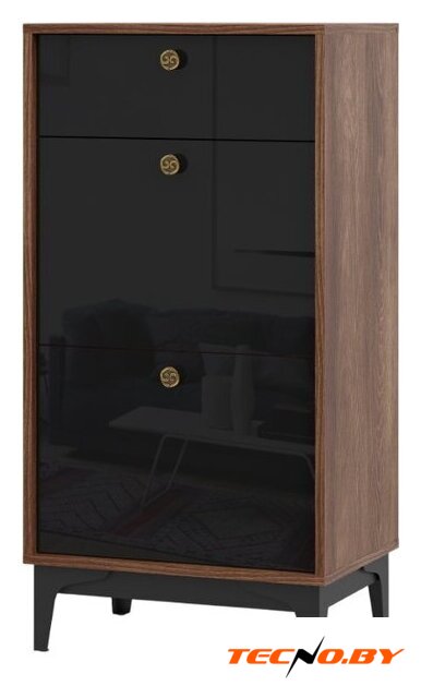 для спальни, каркас ЛДСП, фасад ЛДСП+стекло, 3 ящика, 45x44.6x50.6 см