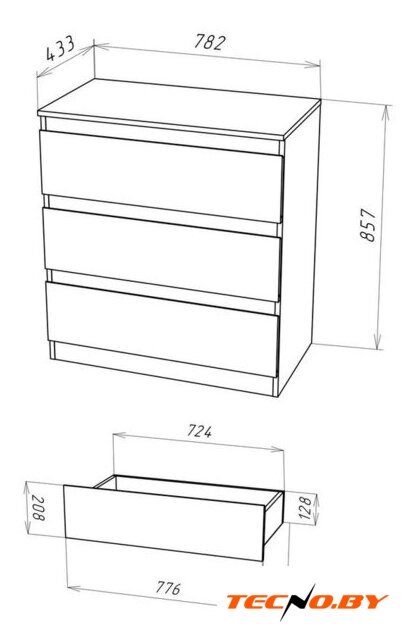 для гостиной, для спальни, для жилой комнаты, для детской, для прихожей, каркас ЛДСП, фасад ЛДСП, 4 ящика, 2 полки, 1 дверца, 80.6x43.5x82 см