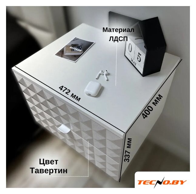 для жилой комнаты, для спальни, каркас ЛДСП, фасад МДФ, 1 ящик, 1 полка, 49x37x47.9 см