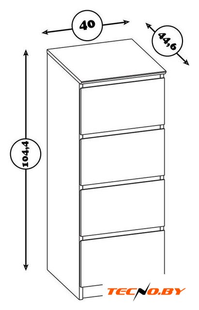 для гостиной, для спальни, для жилой комнаты, для детской, для прихожей, каркас ЛДСП, фасад ЛДСП, 4 ящика, 2 полки, 1 дверца, 80.6x43.5x82 см
