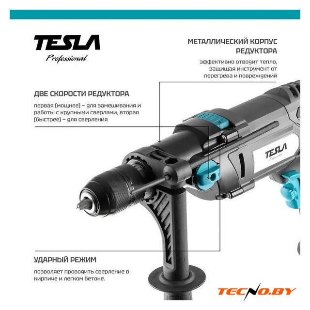 ударная дрель, 1050 Вт, патрон кулачковый (стандартный), 2 скорости, режимы: сверление/сверление с ударом