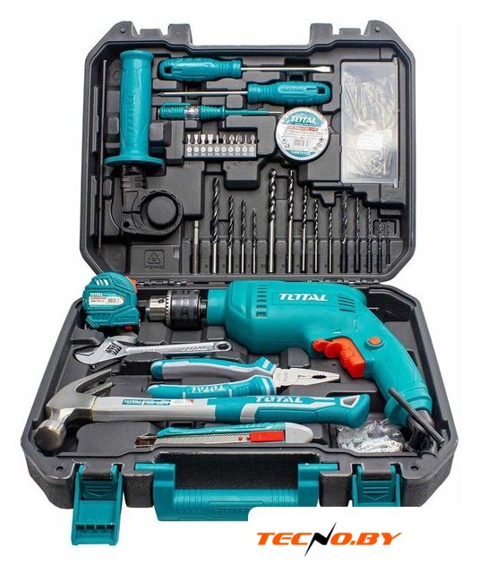 | Комплектация | - Дрель - 1 шт.- Ключ для патрона - 1 шт.- Ограничитель глубины - 1 шт.- Дополнительная рукоятка - 1 шт.- Молоток с гвоздодером - 1 шт.- Отвертка SL5,5 x 100 - 1 шт.- Отвертка PH1 x 100 - 1 шт.- Комбинированные плоскогубцы 7'' - 1 шт.- Разводной ключ 6'' - 1 шт.- Рулетка, 3 м - 1 шт.- Нож с лезвием - 1 шт.- Спиральные сверла (2, 3, 4, 5, 6 мм) - 5 шт.- Сверла по камню (4, 5, 6, 8, 10 мм) - 5 шт.- Сверла по дереву (4, 5, 6, 8 мм) - 4 шт.- Индикаторная отвертка - 1 шт.- Изолента - 1 шт.- Биты (PH0, PH1, PH2, PH3, PZ0, PZ1, SL3, SL4, SL5, SL6) - 10 шт.- Магнитный держатель для бит - 1 шт.- Саморезы (20 шт. X ST3,5, 10 шт. X ST4, 10 шт. X ST5) - 40 шт.- Пластиковые дюбеля (20 x 5 мм, 10 x 6 мм, 10 x 8 мм) - 40 шт.- Инструкция.- Кейс. |