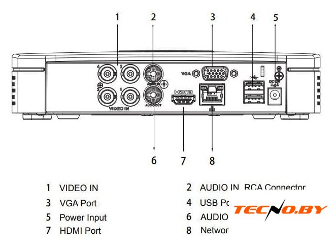 гибридный, 4 аналоговых + 2 IP, HD-CVI/HD-TVI/AHD, 4 IP, 1 HDD, запись 2560x1920, сжатие H.264/H.264+/H.265/H.265+
