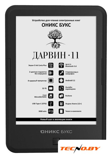 экран 6" E-Ink Carta, 1072 x 1448, сенсорный, с подсветкой, память 16 ГБ, Wi-Fi