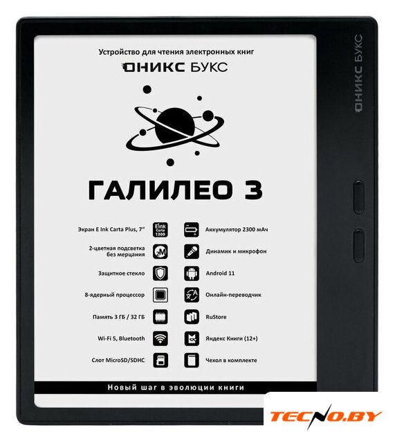 экран 7" E-Ink Carta Plus, 1264 x 1680, сенсорный, с подсветкой, память 64 Гб, карты памяти, Wi-Fi