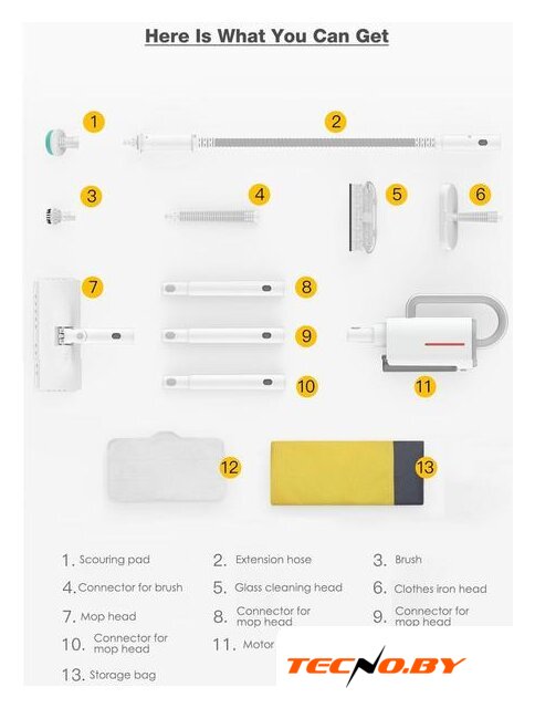 | Дополнительные насадки и приспособления | ткань для швабры, сумка для хранения |