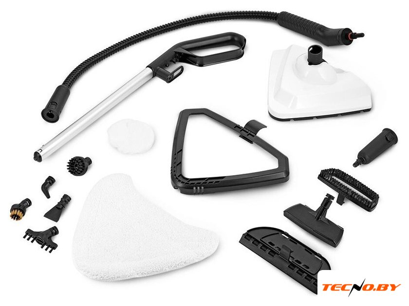 | Комплектация | - паровая швабра;- удлинительная ручка;- корпус;- ручной модуль;- резервуар для моющего средства;- крышка резервуара для моющего средства с уплотнительным кольцом;- резервуар для воды;- фильтр для смягчения воды с уплотнительным кольцом;- щетка для пола;- тряпка для пола;- рамка для ковра;- паровой шланг с уплотнительным кольцом;- струйная насадка с уплотнительным кольцом;- насадка для отпаривания;- скребок для стекла с резиновой вставкой;- ворсовая щетка;- угловая насадка;- скребок;- круглая нейлоновая щетка;- плоская нейлоновая щетка;- руководство по эксплуатации. |