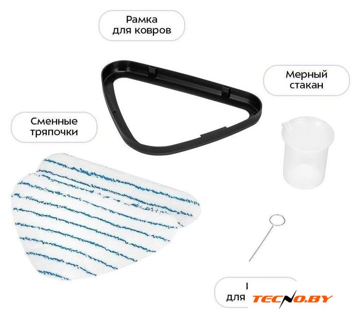 | Комплектация | специальная рамка для ковровых покрытий, игла для чистки прибора и мерный стакан для пополнения резервуара |