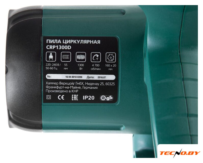 дисковая (циркулярная), 1500 Вт, питание: сеть, диаметр диска: 190 мм, 4800 об/мин