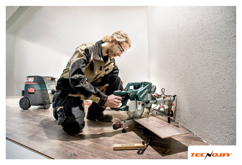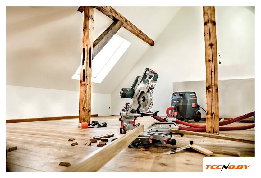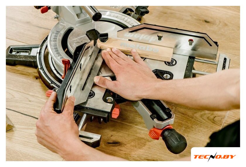 Комплектация | Твердосплавное пильное полотно (60 зубьев)2 встроенных расширения столаЗажим для материалаИнструмент для смены пильного дискаНамотка кабеля |