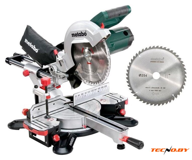 Комплектация | Твердосплавное пильное полотно (48 зубьев)второе твердосплавное пильное полотно2 встроенных расширения столаТорцовочный упорЗажим для материалаИнструмент для смены пильного дискаНамотка кабеляМешок для сбора опилок |