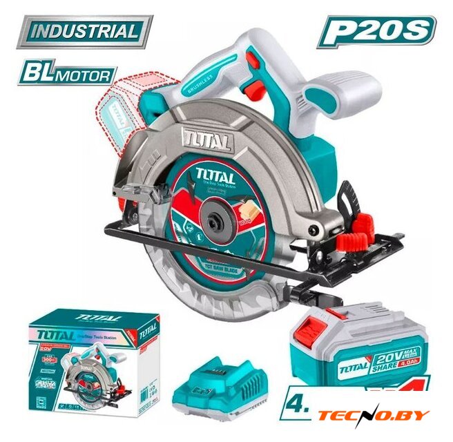 Комплектация | - Циркулярная пила - 1 шт.- Аккумулятор TFBLI20021 4,0 Ач - 1 шт.- Зарядное устройство TFCLI2001 - 1 шт.- Пильный диск TCT 165 мм - 1 шт.- Инструкция- Коробка |
