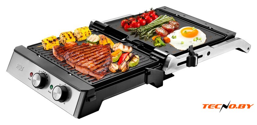 2000 Вт, универсальный, двухсторонний (гриль-пресс), габариты 320x355 мм, рабочая поверхность 296x230 мм