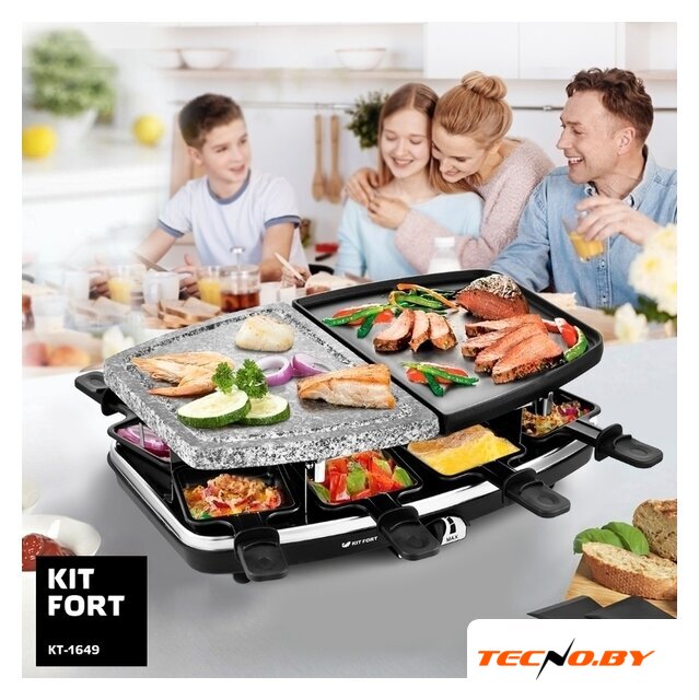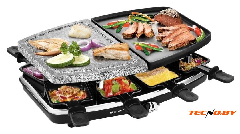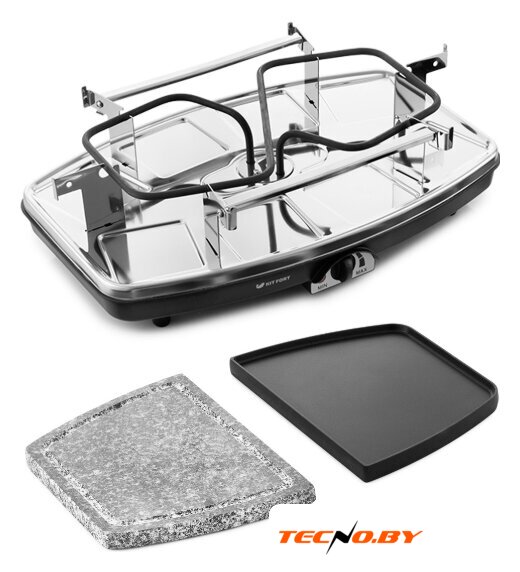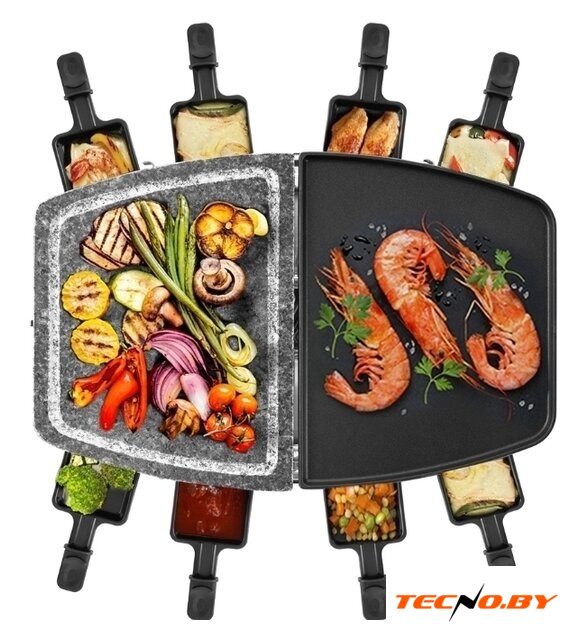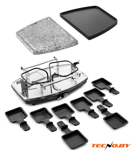 | Комплектация | Раклетница - 1 штКаменная плита - 1 штПанель с антипригарным покрытием - 1 штПорционные сковородки с антипригарным покрытием - 8 штРуководство по эксплуатации - 1 штГарантийный талон - 1 шт |
