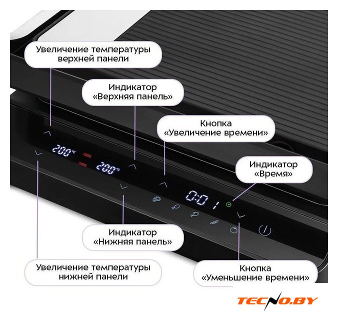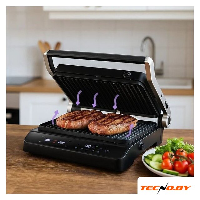 2000 Вт, универсальный, двухсторонний (гриль-пресс), габариты 357x320 мм, рабочая поверхность 296x218 мм