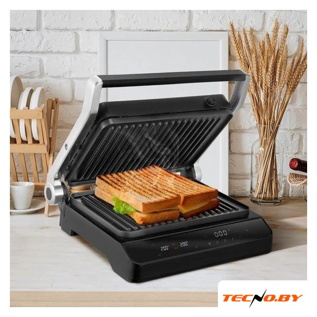 2000 Вт, универсальный, двухсторонний (гриль-пресс), габариты 357x320 мм, рабочая поверхность 296x218 мм