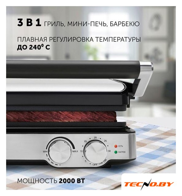 2000 Вт, универсальный, двухсторонний (гриль-пресс), габариты 320x370 мм