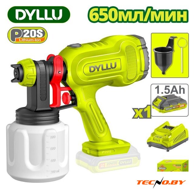 | Комплект поставки | - Краскораспылитель - 1 шт.- Аккумулятор DTLBP515 1,5 Ач - 1 шт.- Зарядное устройство DTFCP518 - 1 шт.- Мерная чаша для измерения вязкости - 1 шт.- Игла для чистки - 1 шт.- Инструкция- Коробка |