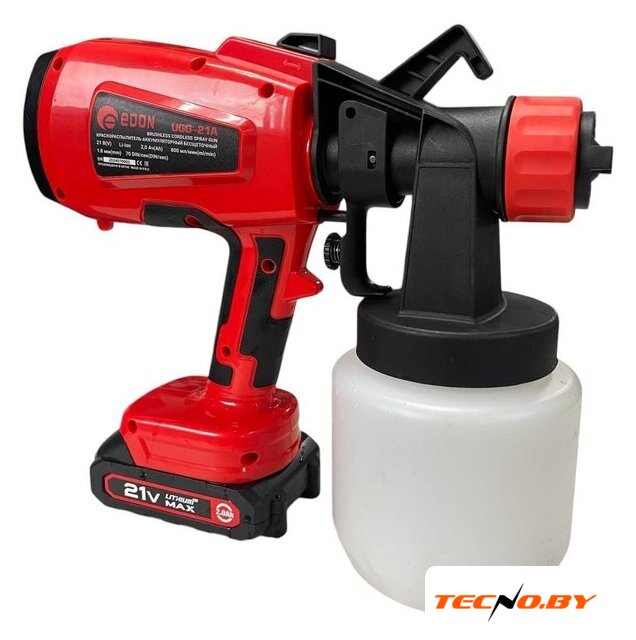 | Комплект поставки | - Краскораспылитель;- Аккумуляторная батарея - 2шт;- Зарядное устройство;- Воронка для определения густоты краски;- Руководство по эксплуатации;- Упаковка (кейс пластиковый). |