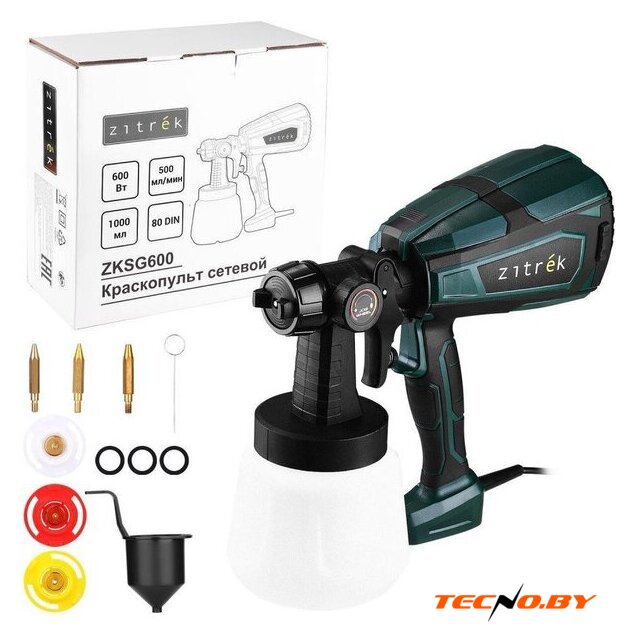 | Комплект поставки | - Краскопульт - 1 шт.- Сопло (одно установлено) - 4 шт.- Наконечник для сопла (один установлен) - 4 шт.- Уплотнительные кольца (установлены на сопла) - 4 шт.- Игла для прочистки сопла - 1 шт.- Стакан для измерения вязкости - 1 шт.- Руководство по эксплуатации- Коробка |