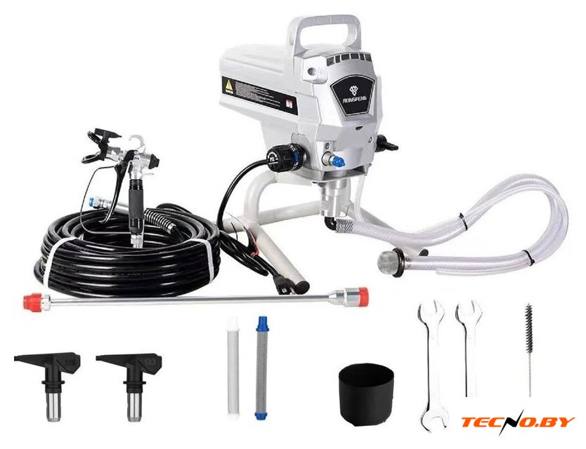 | Комплект поставки | - Окрасочныйаппарат–1 шт- Окрасочныйпистолет–1 шт- Шланг для подачи краски под давлением – 1 шт- Гаечный ключ – 2 шт- Стакан для краски–1 шт- Удлинитель - 1 шт- Щетка – 1 шт- Дополнительное сопло 513 (0.013") - 1 шт- Фильтр 150 mesh для сопла 513 - 1 шт- Дополнительное сопло 523 (0.023") - 1 шт- Фильтр 60 mesh для сопла 523 - 1 шт- Руководствопоэксплуатации–1 шт |