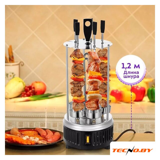 1000 Вт, 5 шампуров, серебристый, 39×21.5×39 см, 1.6 кг