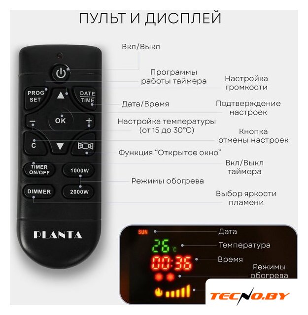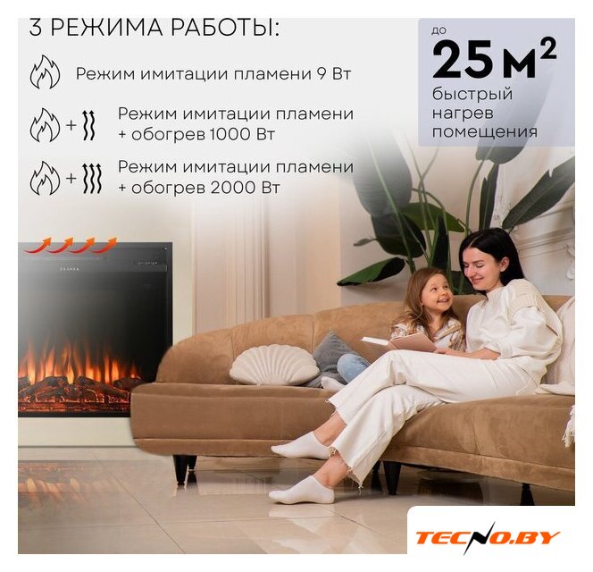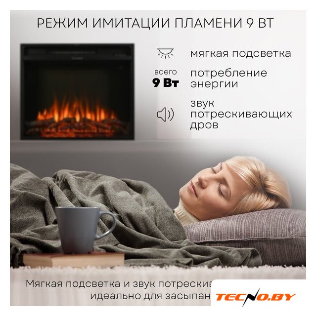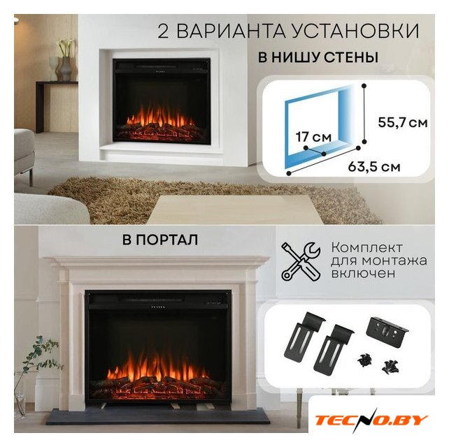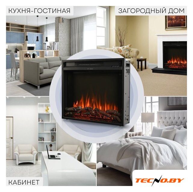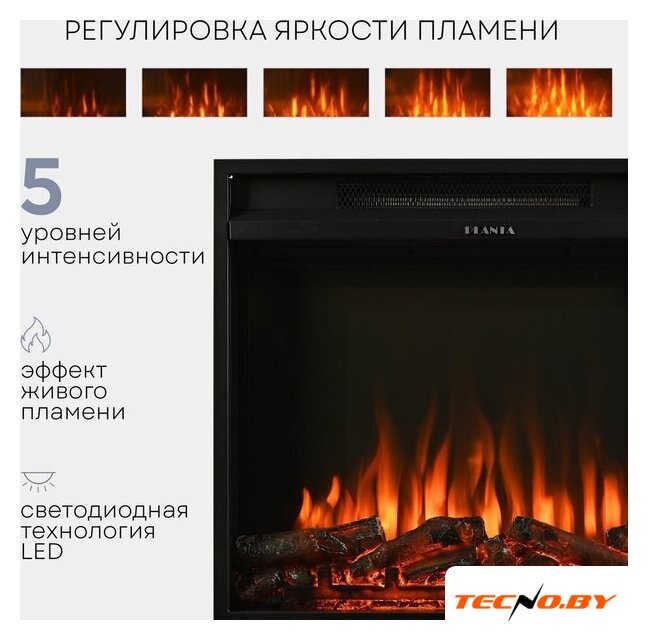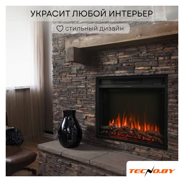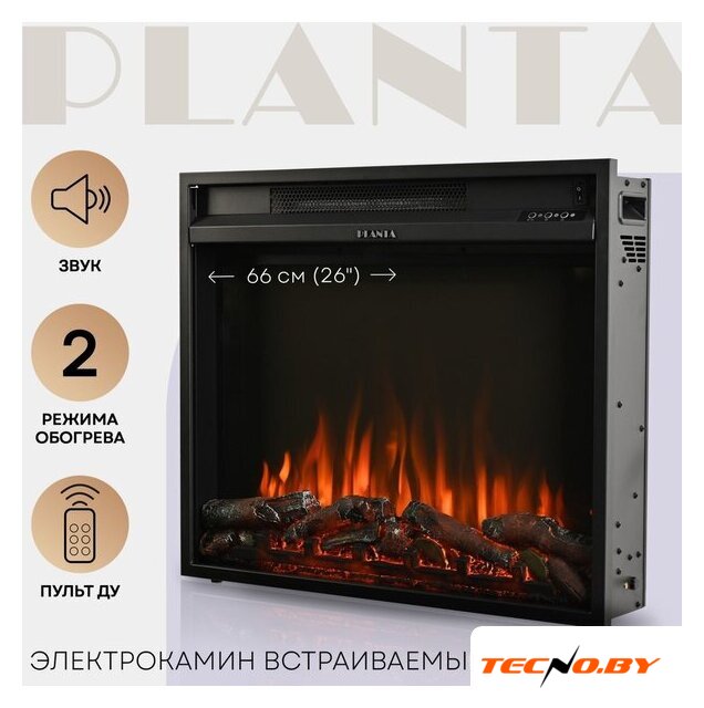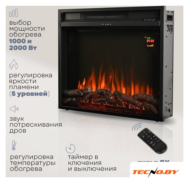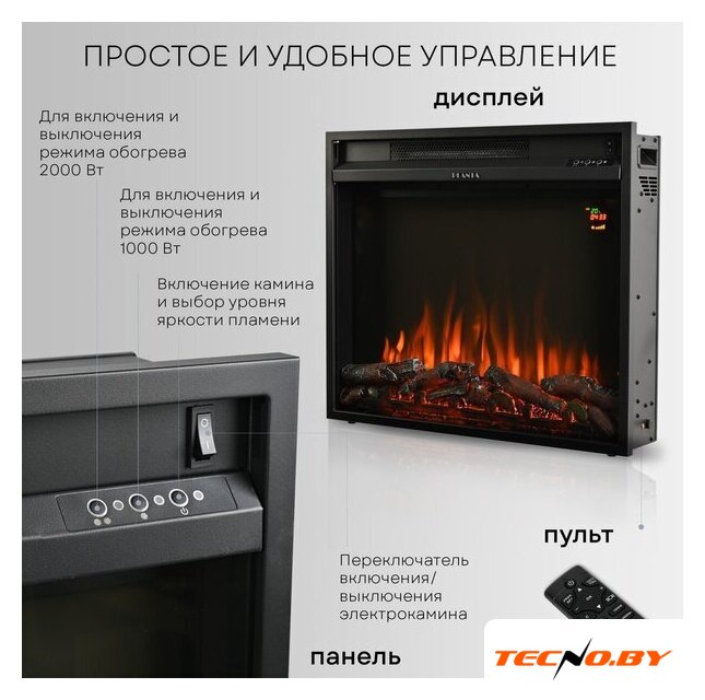 электрокамин, встраиваемый, современный стиль, 2000 Вт, имитация 2D (LED), термостат, пульт