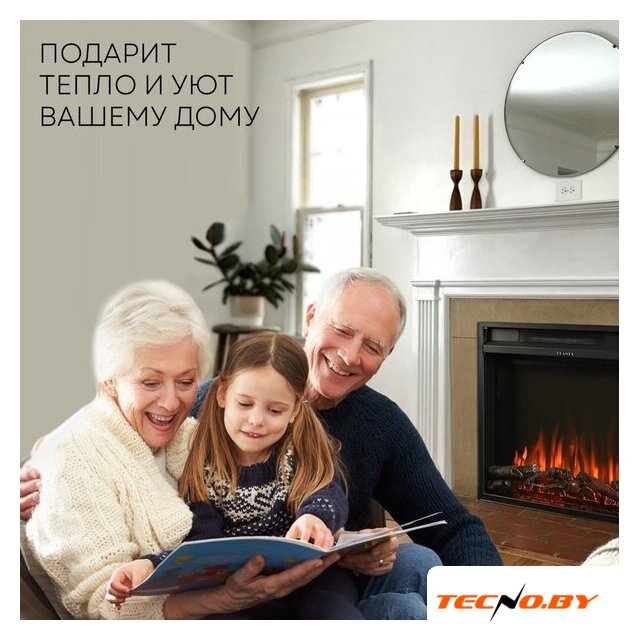 электрокамин, отдельностоящий, классический стиль, 2000 Вт, имитация 2D (LED), термостат, пульт