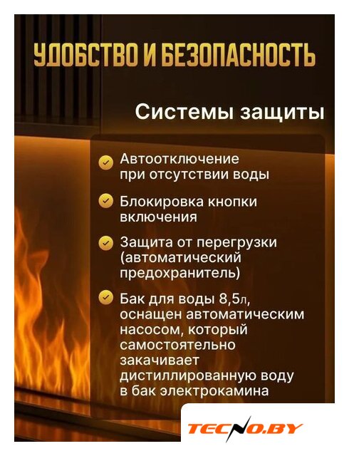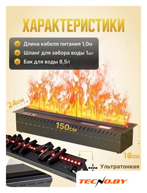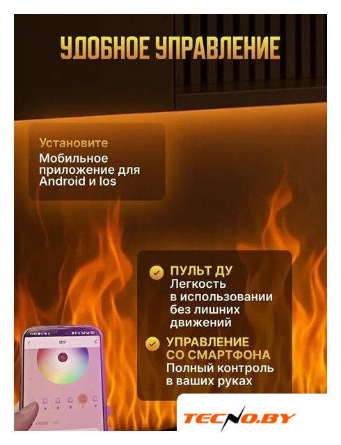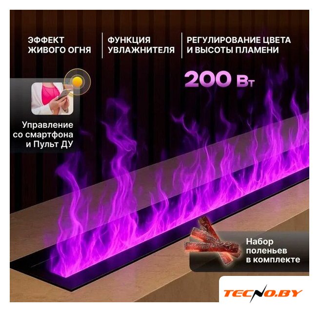 электрокамин, встраиваемый, 1500 Вт, пульт