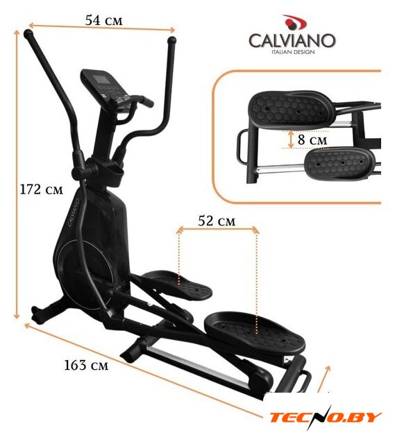 электромагнитная нагрузка, маховик 7 кг, длина шага 42 см, масса пользователя до 130 кг