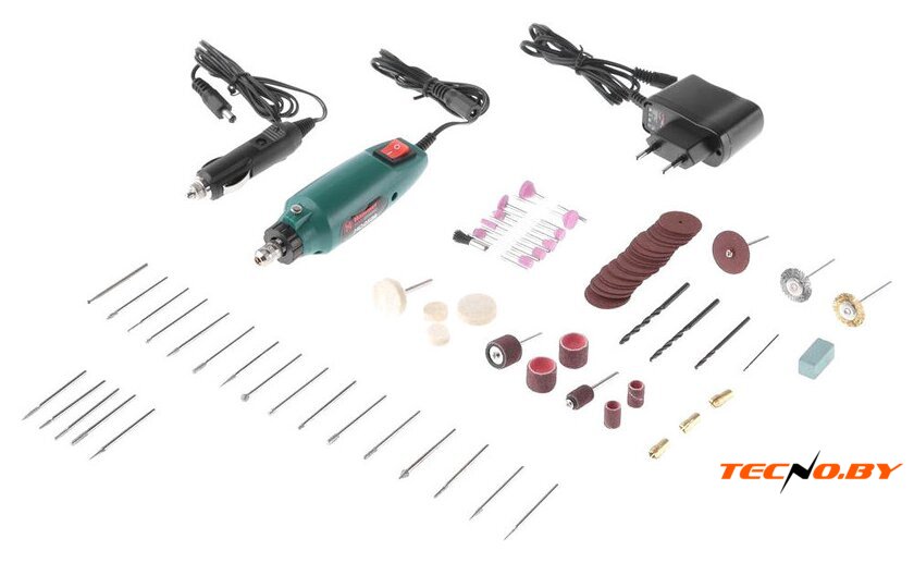 | Комплектация | Цилиндры наждачные 6 шт.Шарошки абразивные 10 шт.Боры 21 шт.Круги полировальные 4 шт.Сверла 4 шт.Цанги 4 шт.Держатель цилиндров наждачных 2 шт.Держатель полировальных кругов 1 шт.Держатель для отрезных кругов 1 шт.Камень точильный 1 шт.Отрезные кругиКордщеткиАдаптер для подключения к сетиАдаптер для подключения к прикуривателю |