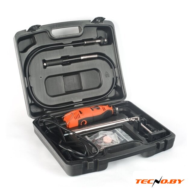 | Комлектация | Гравер;Гибкий вал;Подставка (штатив/струбцина);Шлифовальная лента 12.7х12.7 мм, 80# / 100# / 120# - 1 шт./2 шт./2 шт.;Точильный камень цилиндрический, цилиндрический усеченный, сферический;Точильный камень конический (узкий/широкий);Шлифовальная бумага, круг красный 20 мм, зернистость 120#/240# - 2 шт./3 шт.;Шлифовальная бумага, круг черный, 20 мм, зернистость 100# - 5 шт.;Отрезной диск, круг 24 мм, зернистость 150# / 180# - 4 шт./4 шт.;Проволочная щетка;Насадка для шлифовальной ленты;Полировальный круг - 2 шт.;Щетинная щетка;Сверло по металлу 3.2 мм HSS;Державка для кругов;Фрезерная шарошка (2.4 мм) - 2 шт.;Цанга 2.4 мм;Держатель 3.2 мм;Точильный камень;Ключ;Инструкция;Кейс. |