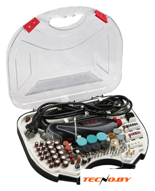 | Комплектация | Гравировальная шлифмашинаГибкий валКомплект цанг - 6 шт.Насадка шлифовальная с алмазным напылением - 5 шт.Насадка со шлифовальным камнем - 9 шт.Насадка-резец - 2 шт.Насадка-барабан под круговую шлифовальную шкурку Ø 12 мм - 2 шт.Круговая шлифовальная шкурка Ø 6 - 9 шт.Круговая шлифовальная шкурка Ø 12 - 8 шт.Подложка под шлифовальные шкуркиШлифовальная шкурка Ø 20 мм - 60 шт.Отрезной круг Ø 24 мм - 50 шт.Отрезной круг Ø 32 мм - 5 шт.Набор шлифовальных кругов - 12 шт.Круг шлифовальный веерный лепестковыйПолировальный круг Ø 12 мм - 4 шт.Полировальный круг Ø 25 мм - 1 шт.Насадка для установки отрезных кругов и шлифовальных шкурок - 3 шт.Насадка для полировальных круговШлифовальный брусокНасадка-щетка - 2 шт.Насадка-щетка проволочная - 2 шт.Насадка-кисточкаНасадка-кисточка проволочнаяТуба с пастой шлифовальнойСверла - 6 шт.КлючЩетки угольныеРуководство по эксплуатацииПластиковая упаковка |