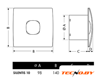накладной осевой вентилятор, потолочная/настенная установка, диаметр: 9.8 см, производительность: 98 куб.м/ч, 15 Вт, отдельная кнопка + выключатель света + таймер (задержка отключения), белый